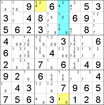 An example of Aligned Triple Exclusion is shown below, taken from Ruud's Daily Nightmare for 2006 November 25.