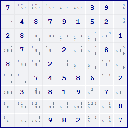 Common Peer Elimination is a basic solving technique that primarily applies to Sudoku Variations with irregular groups of cells, such as Jigsaw and Killer Sudoku, and (to a lesser extent) to Sudoku-X. It is based on the following simple principle: