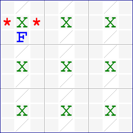 Like the basic Swordfish, you do not need a candidate in each cell marked X. In fish techniques, the cells without a candidate are more important.