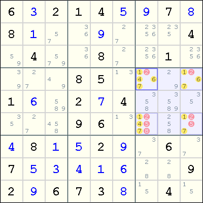 When all candidates for 4 digits in a house are limited to only 4 cells, these cells must contain these 4 digits. Subsequently, all remaining candidates can be removed from these 4 cells.