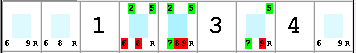 For this row the candidates 2, 5 and 7 (shown shaded green) occur in only three cells, this means that the other candidates in these cells (shaded red) can be removed.