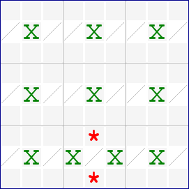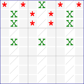 This is only one member of the large family of fish patterns. The Sashimi Swordfish uses 3 rows, 3 columns and a box. Other sizes of Sashimi Fish are Sashimi X-Wing and Sashimi Jellyfish.