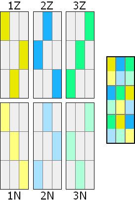 When we ignore wrapping around, each strand follows a diagonal path. Strands that follow a \ direction are identified with the letter N and strands in the / direction are identified with the letter Z. The number refers to the starting position, which can be 1 (top), 2 (middle) or 3 (bottom).